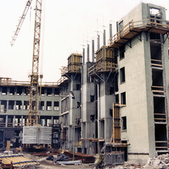 For almost three decades, the IMP building catered to the ever-changing demands of researchers and technologies. In addition to numerous small modifications, it also underwent major reconstruction works. In 1992, the university-building next door was opened and a passageway was created, connecting the two buildings via the top floor – marking the birth of the ‘Vienna Biocenter’. Three years later, four of the adjacent shed-halls were incorporated into the IMP, providing space for the new Max Perutz Library, a generous workshop and much needed study-room. Construction on the newly founded ‘Life Sciences Center Vienna’ of the Austrian Academy of Sciences started in 2003 and by 2006, the IMP was physically and thematically connected to two newly founded institutes - IMBA and GMI. Simultaneously, the IMP cafeteria underwent major remodelling and was scaled up to cater to the rising number of customers.