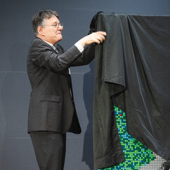 “Locus” is an artwork in acrylic on oligo tubes, created by Philipp Dexheimer in 2025 to mark the IMP's 40th anniversary. The mosaic is created from building blocks of scientific discovery: each of its 10,000 hand-painted oligo tubes contains DNA used in experiments at the Vienna BioCenter.