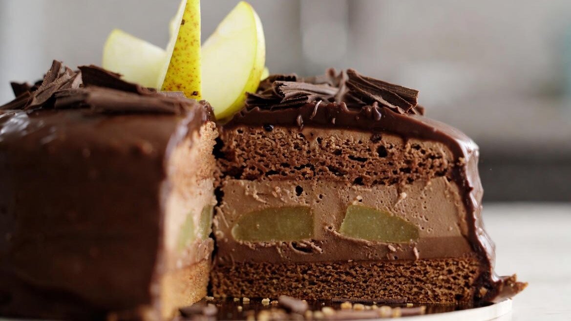 Its layers are built on a delicate sponge base of butter, sugar, eggs, flour, and dark couverture chocolate. The ganache cream blends white and dark chocolate with cream and whisky, complemented by pears and pear juice for a bright, fruity note. Finished with a silky chocolate and cream topping and bringing it all back to Max Birnstiel’s roots with a glaze of honey –and dark chocolate, the result is a dessert that is both complexly layered and simply delicious.