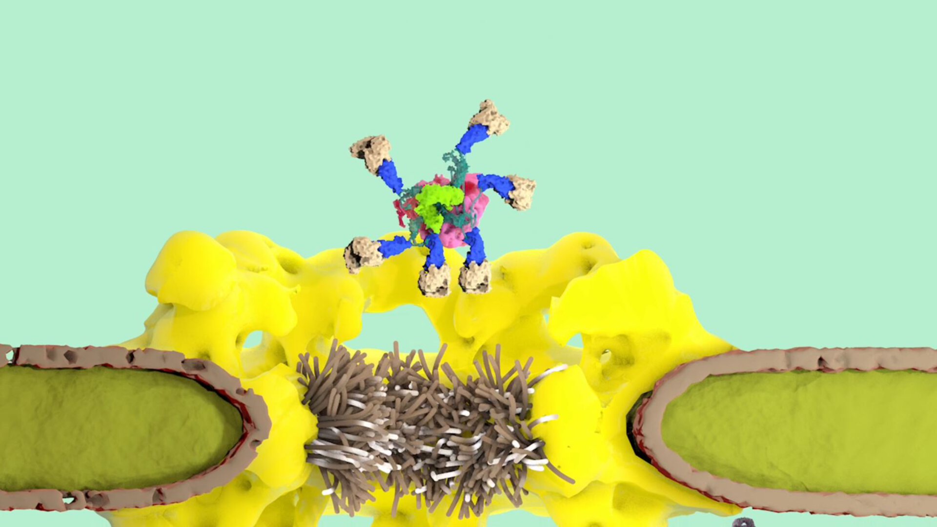 The structures revealed a striking mechanism: AKIRIN2 binds directly to the proteasome and acts as an adaptor that draws nuclear transport receptors to its surface. Rather than working as a single molecule, AKIRIN2 assembles in multiple copies on the proteasome, effectively coating it with transport factors and turning the proteasome into a cargo that the nuclear pore can recognise. “This clustering is the key,” explains Haselbach. “The proteasome is enormous compared to most nuclear cargos. By bringing in multiple transport receptors at once, AKIRIN2 solves the size problem of nuclear transport.”