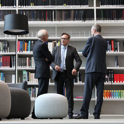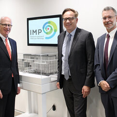Following up on his previous visit at the occasion of the opening ceremony in March, German ambassador Johannes Haindl spent a morning at the IMP today for a deeper insight into the new building, the founding structure of the institute and current research projects.