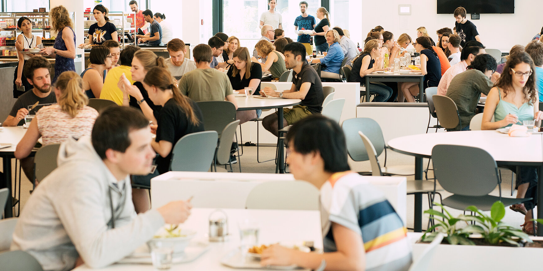 The cafeteria is open for everybody from 8:30 am to 2:30 pm on weekdays and from 11:30 am to 3:00 pm on weekends. The cafeteria is the most important casual meeting point for the Vienna BioCenter. The dedicated in-house staff at the cafeteria prepares some 600 full meals each day.